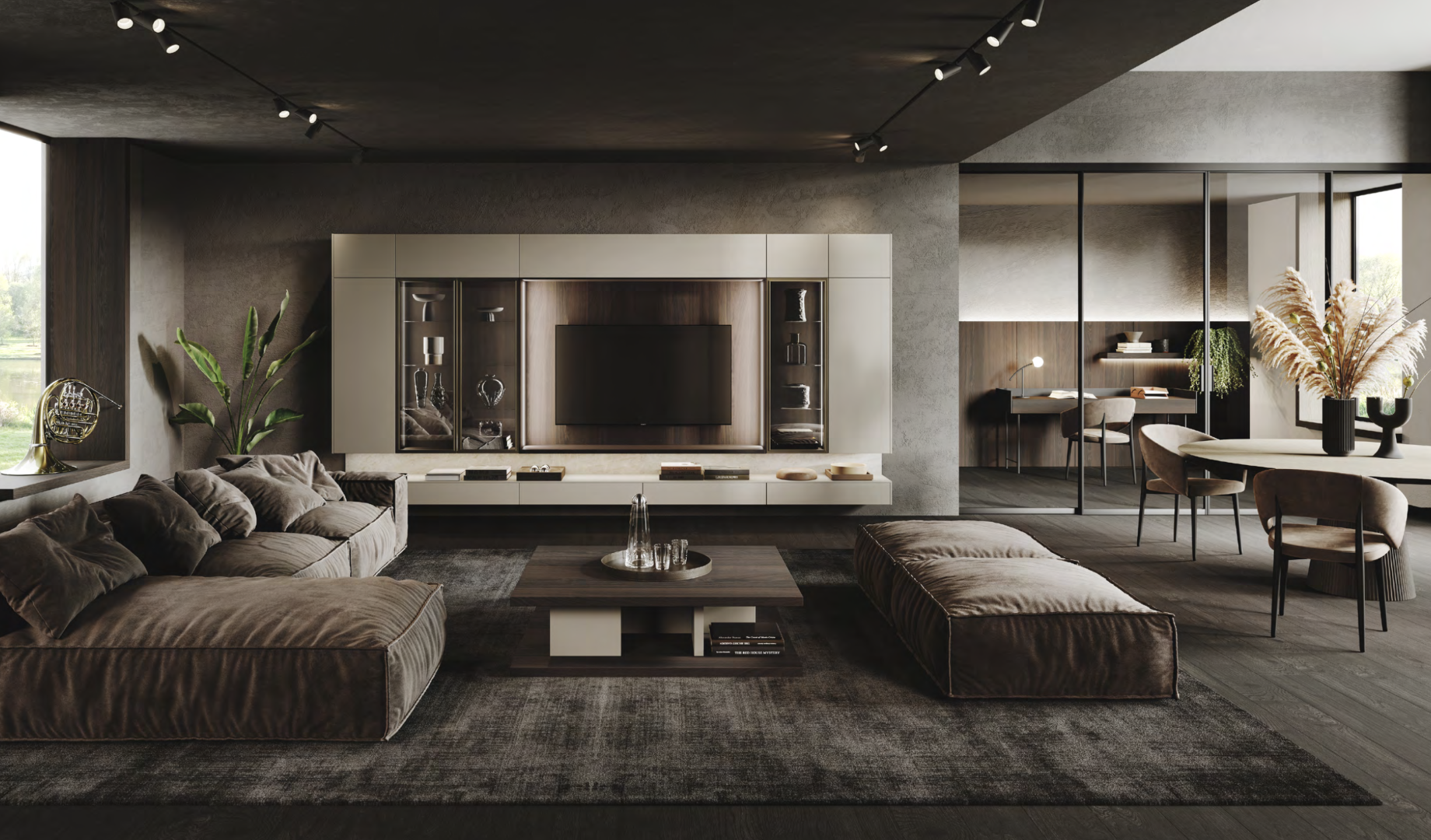 More and more people are choosing kitchen and lounge furnishings that maintain continuity of style. Furnishing both areas with coordinated elements and finishes is the best way to achieve a balanced, unified look, especially with open space kitchens.