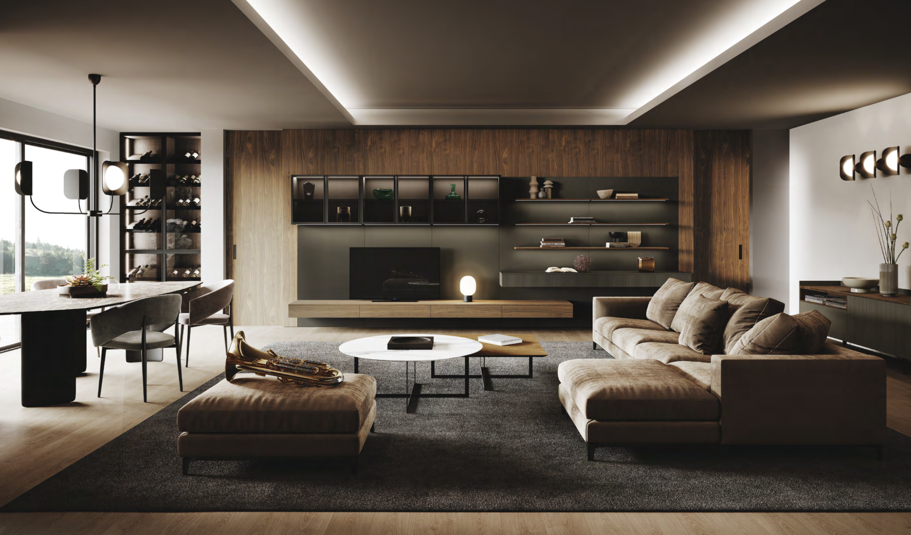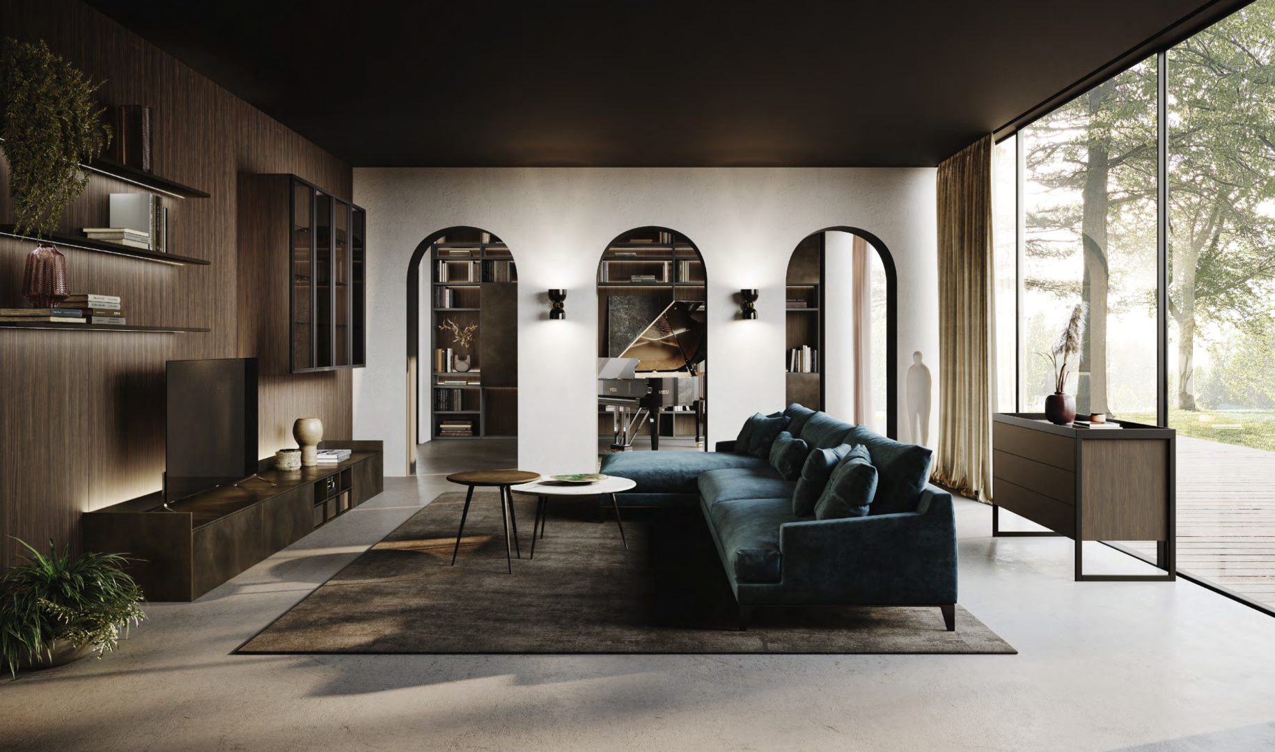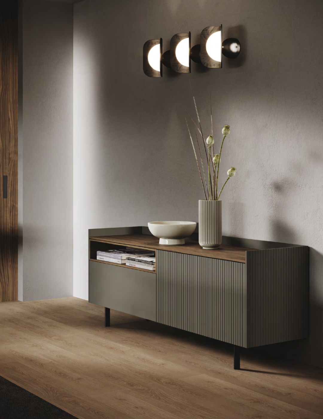 In multi-purpose lounges, sideboards provide space to store dishes, books and other objects needed for daily life, combining functionality with appearance.