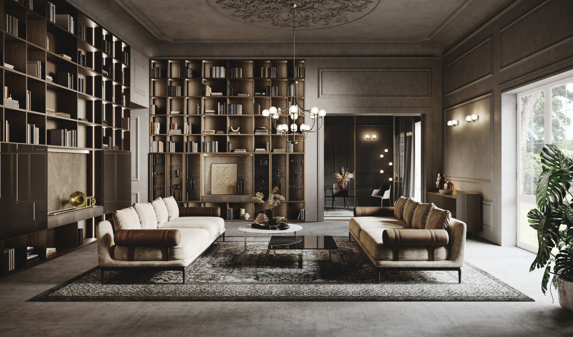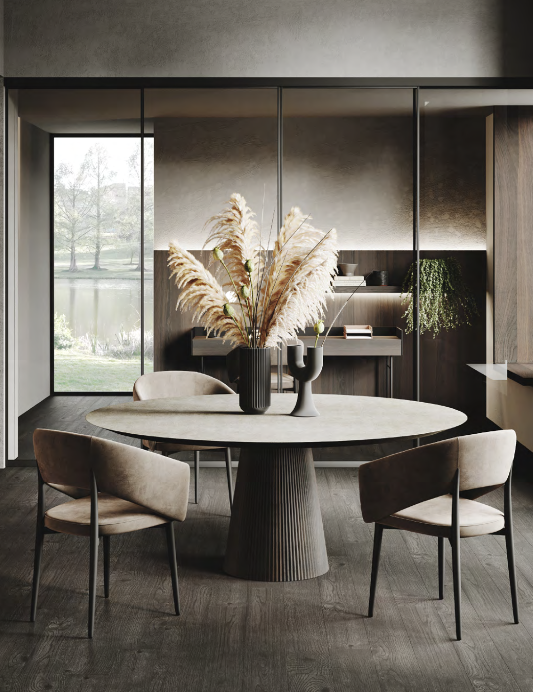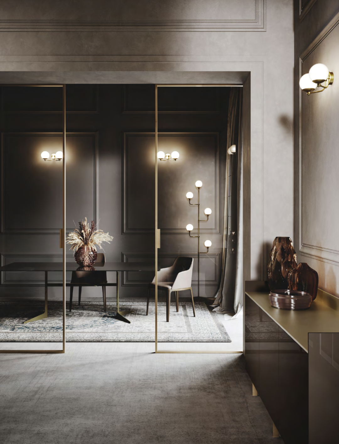In multi-purpose lounges, sideboards provide space to store dishes, books and other objects needed for daily life, combining functionality with appearance.