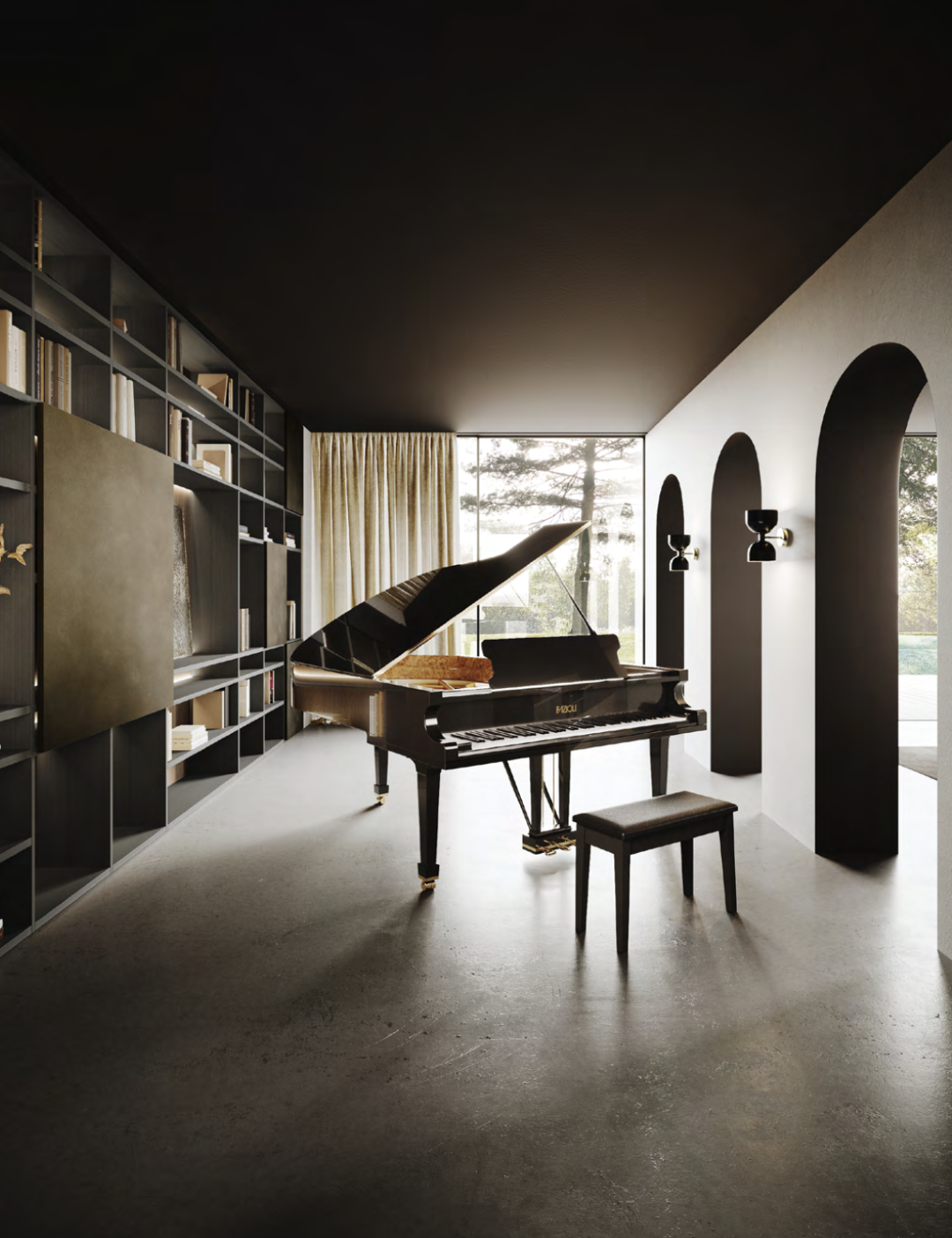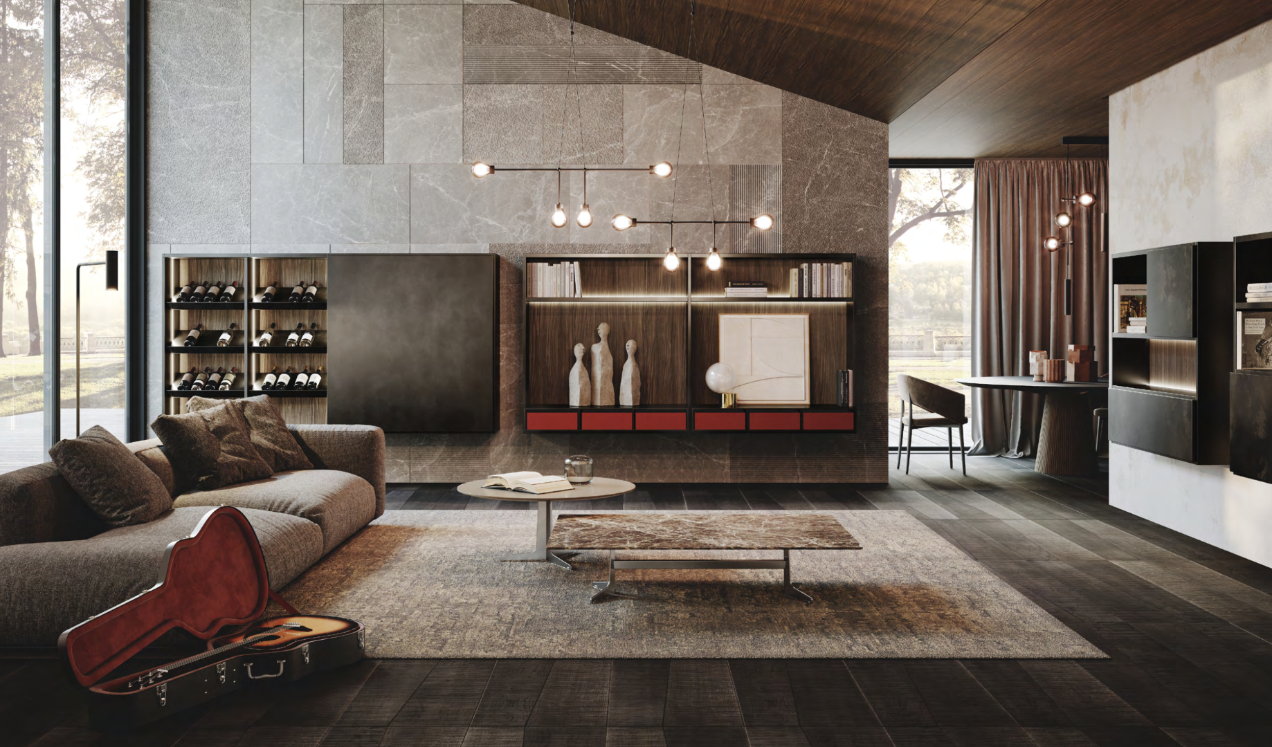 A catalogue for Day Systems where Jazz is the principal matter of inspiration, it per- fectly fuses with the amazing sophistica- tion and elegance of Guzzini & Fontana’s products. A proper introspective path that is born for the jazz musician’s per- sonality to find a unique way of arrang- ing a house. The result is in a collection of environments that have a very strong personality and with a hypnotic charis- ma. Jazz represents for GF INTERIORS’s freedom of expression, going beyond the music sheet to obtain unique perfor- mances, in the same way this happens in its collections where GF experiments in- finite variations of materials, shapes and finishes that give rhythm and sound to an everyday living.