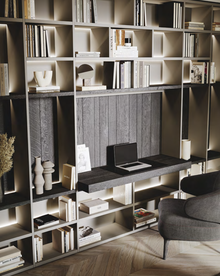 These essential furnishing elements match your kitchen and create a sense of continuity.Wall compositions can provide everything you need for a smart home office. With Stosa, you can customise your own workstation with open elements, backs and chairs. Stosa’s highly flexible design system guarantees complete freedom in the configuration of individual elements.