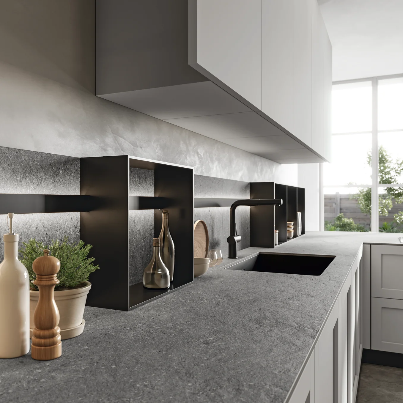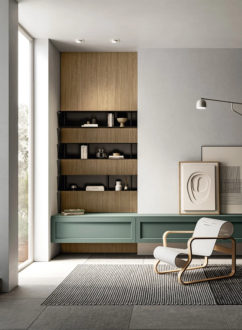 Contemporary kitchens are able to imbue classical stylistic elements with a decidedly up-to-date streak. Alma achieves this goal without frills: the framed doors have a vintage character with their clearly defined frame free of excesses, with a built-in handle. It is available for all our standard units and also with the 75 cm expanded width, a more spacious and modern version. The traditional proposals also allow for adding our glass cabinets, which can be adapted to contemporary kitchen tastes thanks to glass doors with aluminium frame. For people who desire a fresh look that reinvents tradition.
