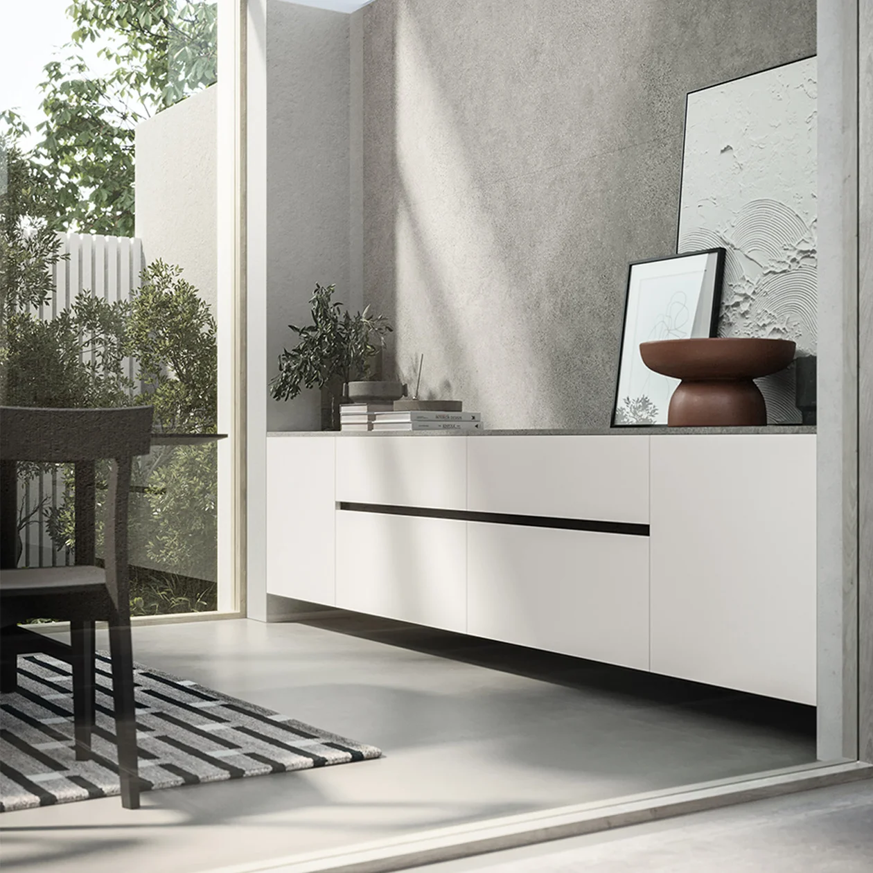 With Cloe, Arredo3 makes the modern kitchen affordable and functional with lots of different options so that you can vary the design and find your own individual look. You benefit from a wide spectrum of grip profile openings, myriad handles, UV lacquered and UV excimer finishes as well as laminated ones for a door that expresses your personality. A Cloe project is an easy way to open a doorway onto the design world as you experiment and coordinate countertops and work surfaces as well as accessories such as tables and chairs, all lovingly selected by the Arredo3 designers. Cloe has various solutions for living rooms that coordinate with kitchen furnishings for a seamless result (including small spaces and open-plan layouts). For those who want a youthful, compact and dynamic kitchen.