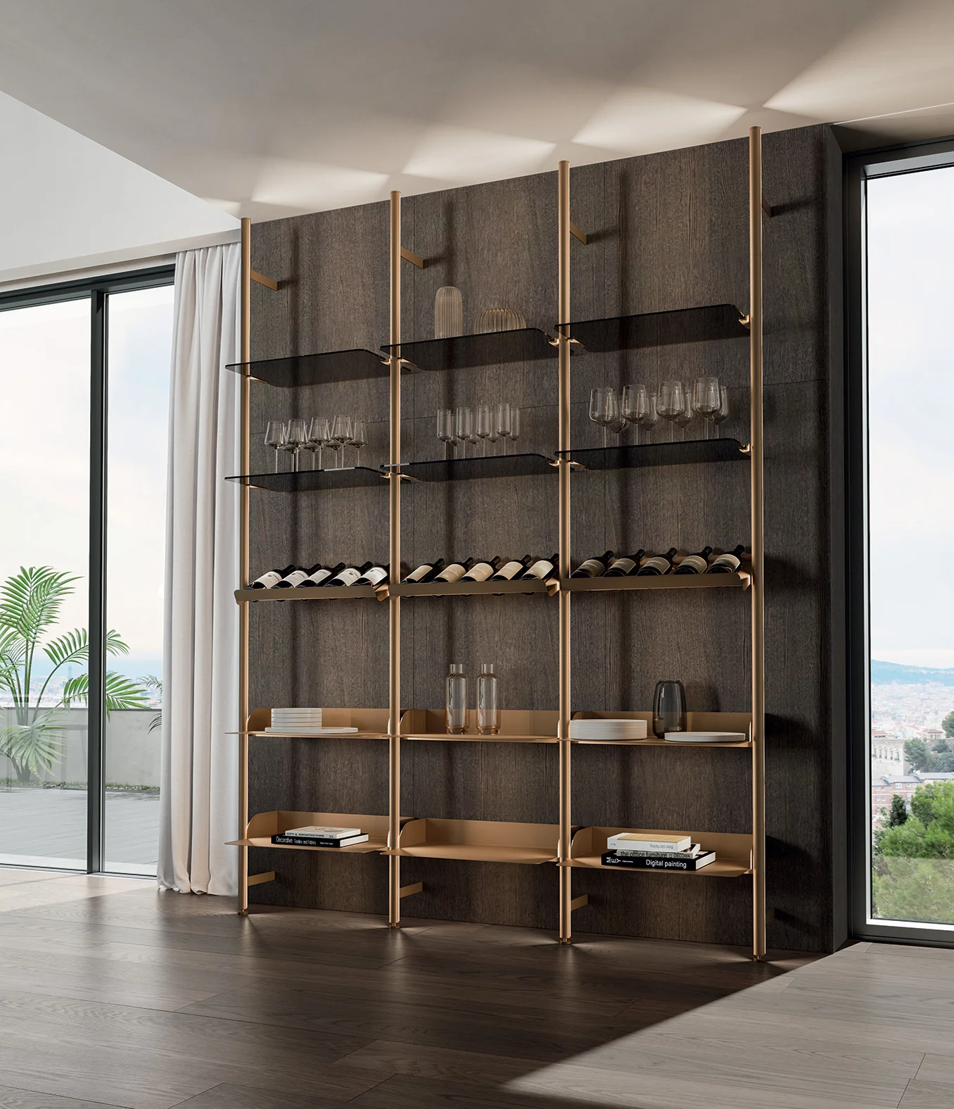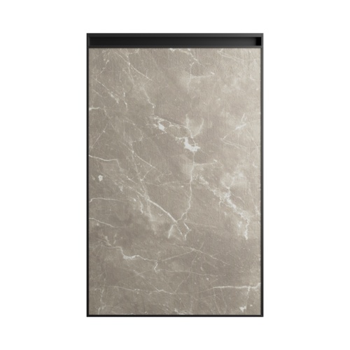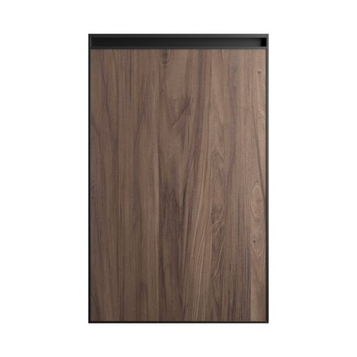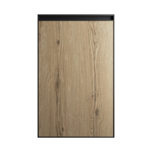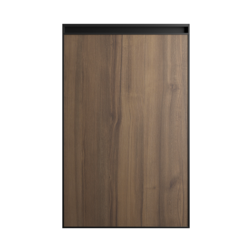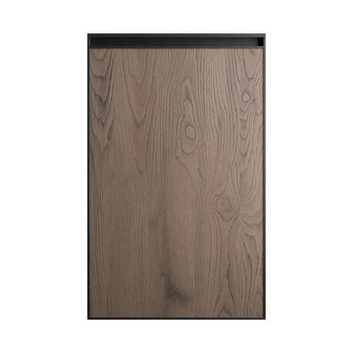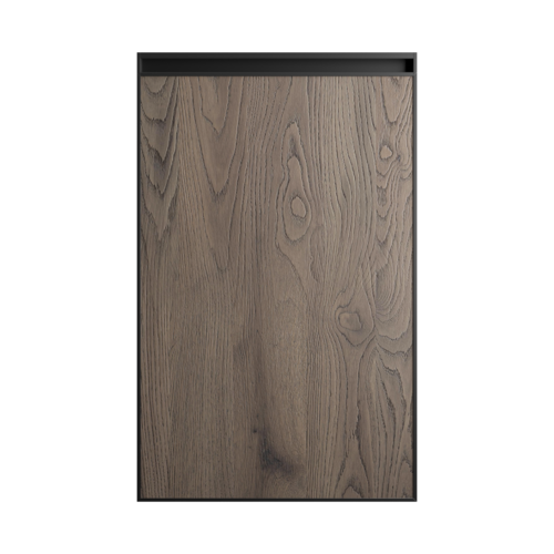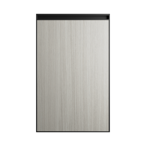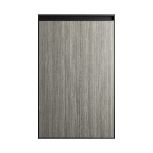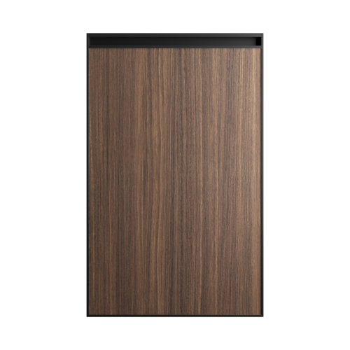 When making your choices for the Kronos front door panel, you can take your pick from PVC-free PET to modern sturdy laminates with neutral or wood finishes, or get the next step on with stratified HPL, layers of cellulose fibres rendered hardwearing and compact via a high-pressure process which become stratified Fenix with a top layer of Fenix. It is an outperforming hi-tech material: it withstands scratches, abrasions and dry heat; surface micro-scratches can be removed through a regeneration process. Then, there are the sustainable elegant materials from the Gaia range. The travi veneer is made up of 100% reclaimed post-consumer rafters, the matt glass is 100% recyclable and the matt Laminam is made up of thin layers of pre-consumer recycled ceramics obtained using sustainable methods.