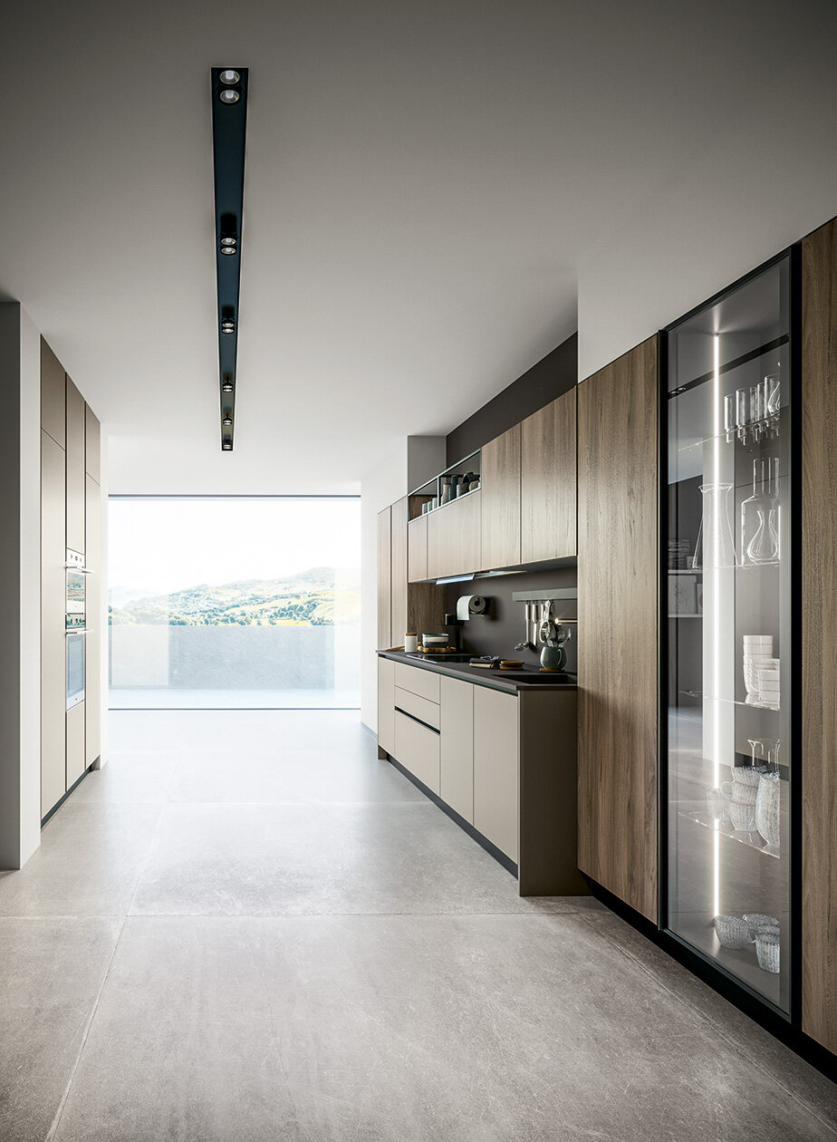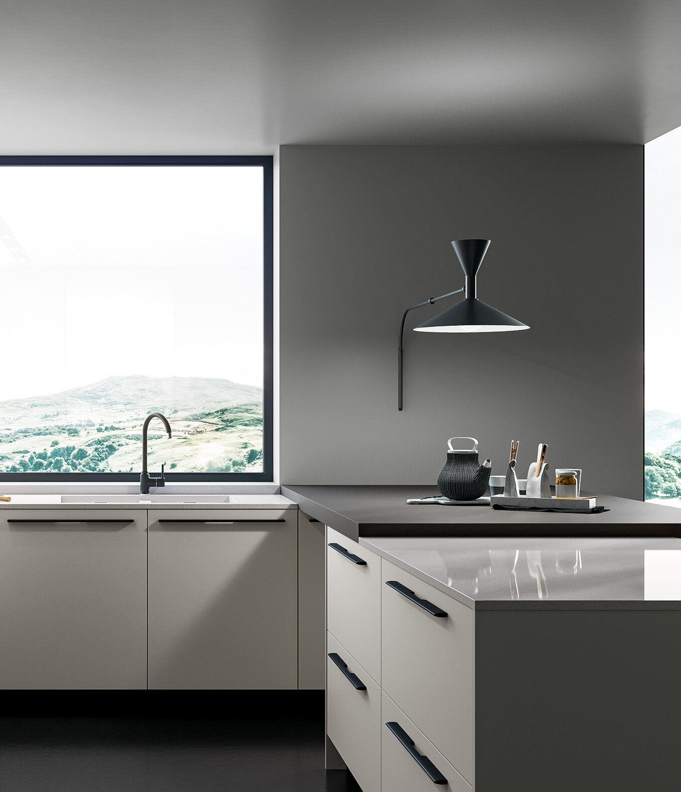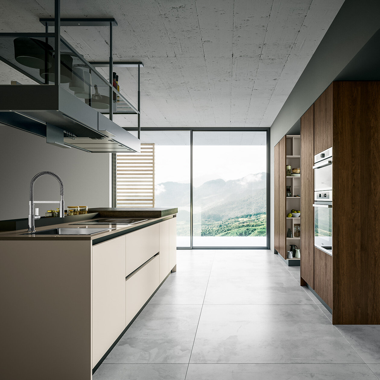 Round is a kitchen with a young vibe whose hallmark is a cabinet door with rounded upper edges. It features a panel in wood-particle board or MDF, has a post-formed edge and is slightly rounded on the vertical side and straight on the horizontal side with a grip or handle opening system. This gives rise to elegant functional kitchens not only because the shape of the door is inherently stylish, but also because Arredo3 products are designed to meet all kinds of requirements in terms of ordinary drawers, deep drawers, tall units, wall units, base units, islands and peninsulas. The end result? The kitchen of your dreams. For those who like smooth edges and practical solutions.