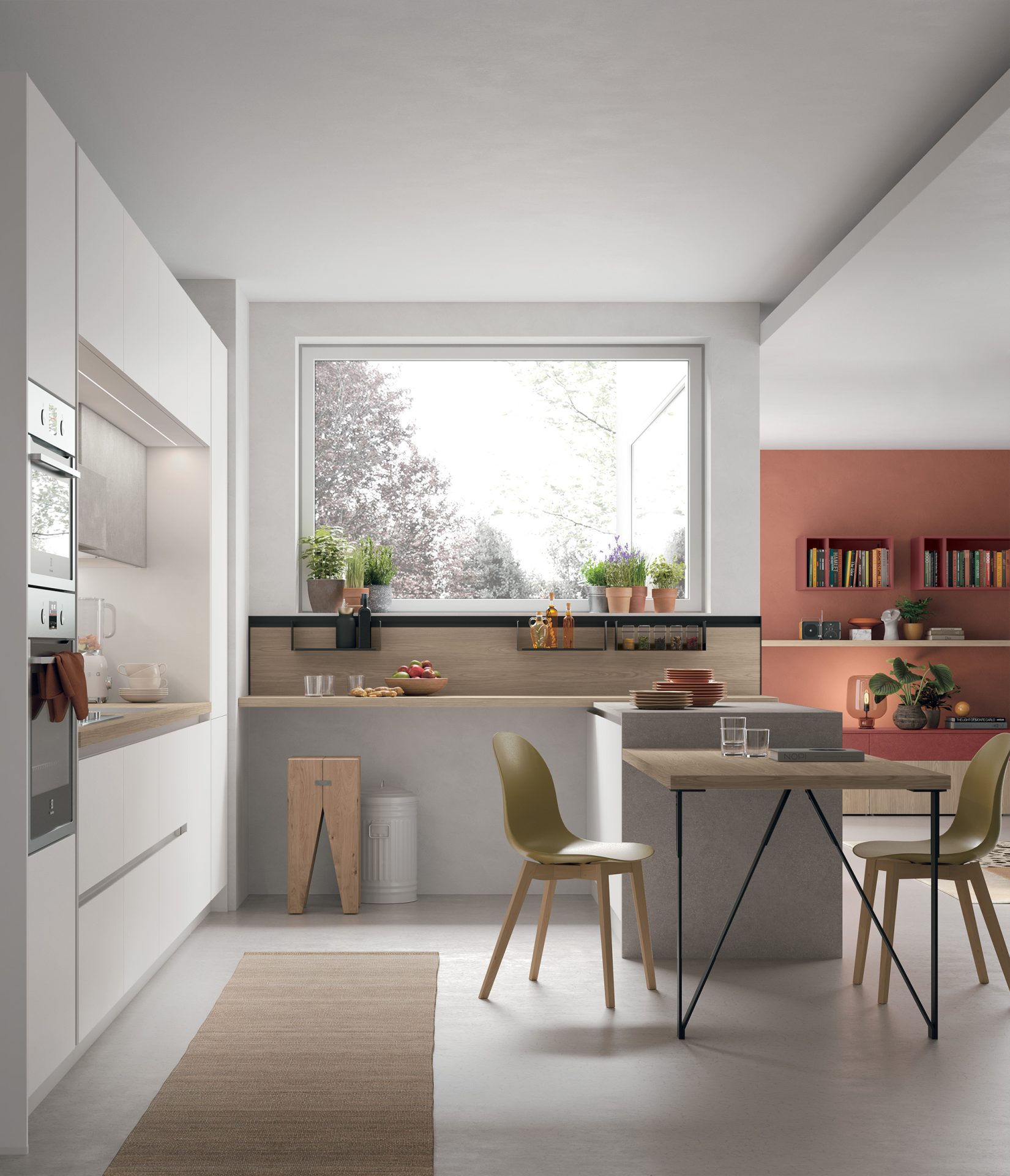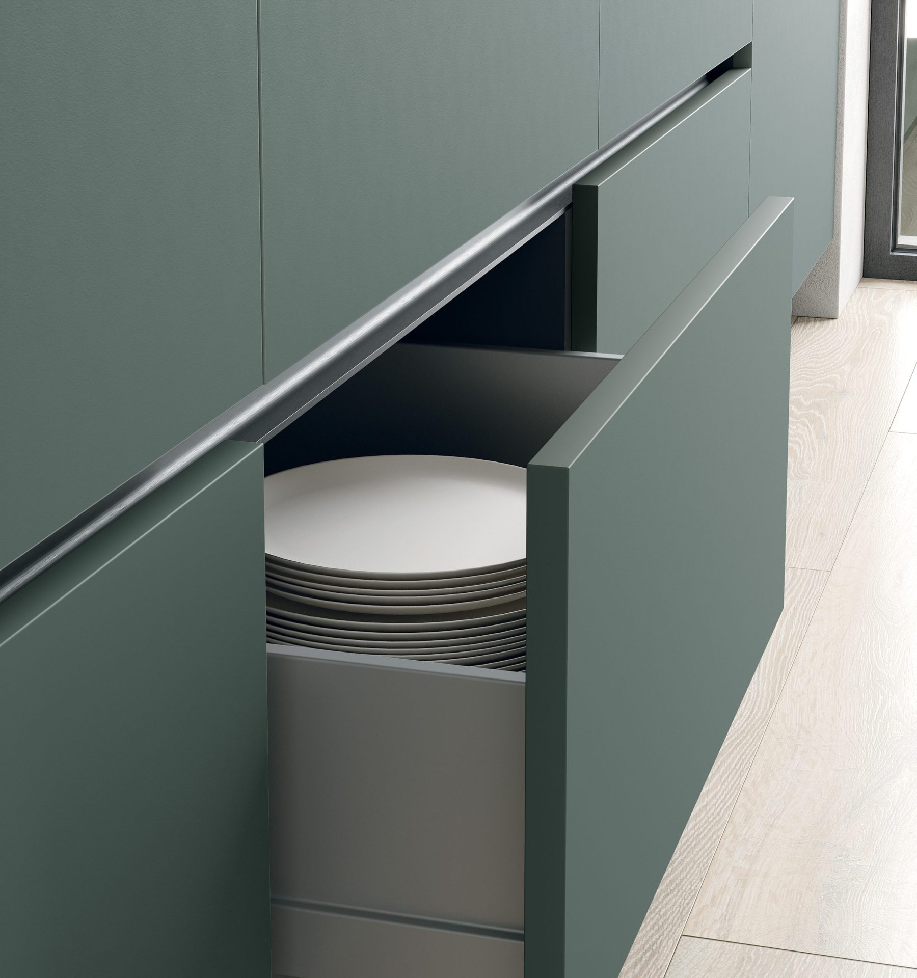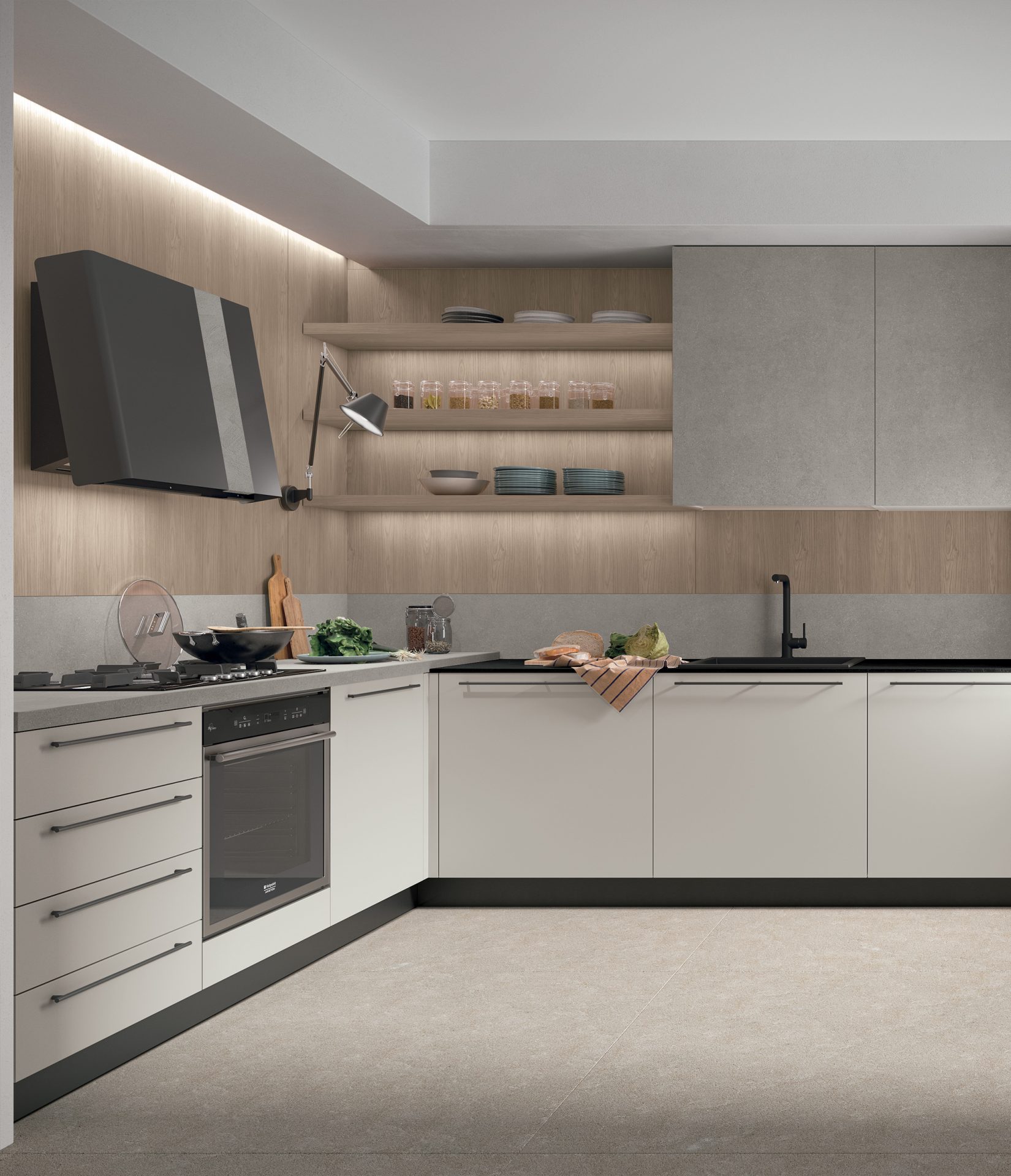 Young adapts to the new approach to study-work, and in the living space, lends a sense of shape to the home office corner. Different functionalities are created with a view to maintaining aesthetic unity within the open space. New finishes, new materials and textures and solid colours: with Young, you can create original combinations and pairings, expressing your personality in the kitchen.